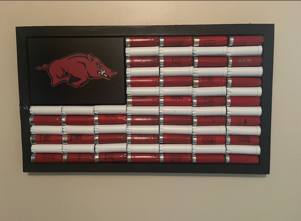 Mom’s weekend silent auction item Shotgun Shell flag 20” w x 12” h Value: $90 Donated by: Amy Batson, Stacey Pinkerton, Dawn Barre, Becca Clark & Cindy Wagner