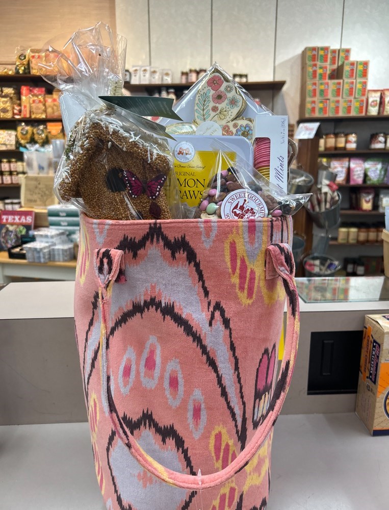 Easter towel, bird feeder , paper napkins and plates, lemon straws, Easter mints and mix along with bag. Sweet Gourmet Shop Tyler, Texas value $150