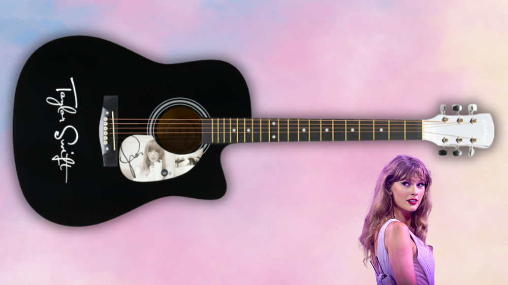 Calling all Swifties! This full-size display guitar is hand-signed by Taylor Swift on the pickguard and comes with authentication by JSA, PSA, Beckett, or ACOA for guaranteed authenticity.🎸 While this guitar is meant for display and not for performing your next Eras Tour set, it’s the perfect centerpiece for any fan’s collection. Whether you’re Team Fearless, 1989, or Midnights, this iconic piece will have you saying, “Look What You Made Me Bid!”🎶 Don’t miss your chance to own a piece of Swiftie history— this one’s bound to never go out of style. *Guitar may be a different color/style than what is pictured.