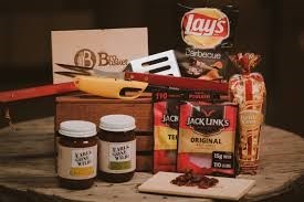 The Contents 4 – Essential BBQ Utensils Spatula with Bottle Opener, BBQ Brush, Tongs, & Fork 1 – Bag of BBQ Lays Chips 1 – Popcornopolis Gourmet Flavored Popcorn 2 – Packs of Beef Jerky (1.25oz/pack) 2 – BroBasket Cedar BBQ Smoker Planks 1 – Scripto™ long BBQ lighter 1 – Pack of toothpicks for when you’re done 1 – Reusable BroBasket Crate The BBQ Sauces 1 – California Barbecue Sauce 1 – Jalapeno Barbecue Sauce FMV: $117