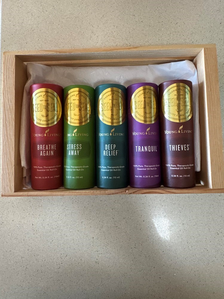 Five (5) roll-on bottles of essential oils: Breathe Again, Stress Away, Deep Relief, Tranquil, and Thieves. Super easy to use for immediate application! Selected and donated by Young Living Essential Oils Independent Distributor Jessica Marquina. Jessica has two daughters who sing in our choir, and her oldest daughter composed a song for Angeli to sing this season! FMV $211