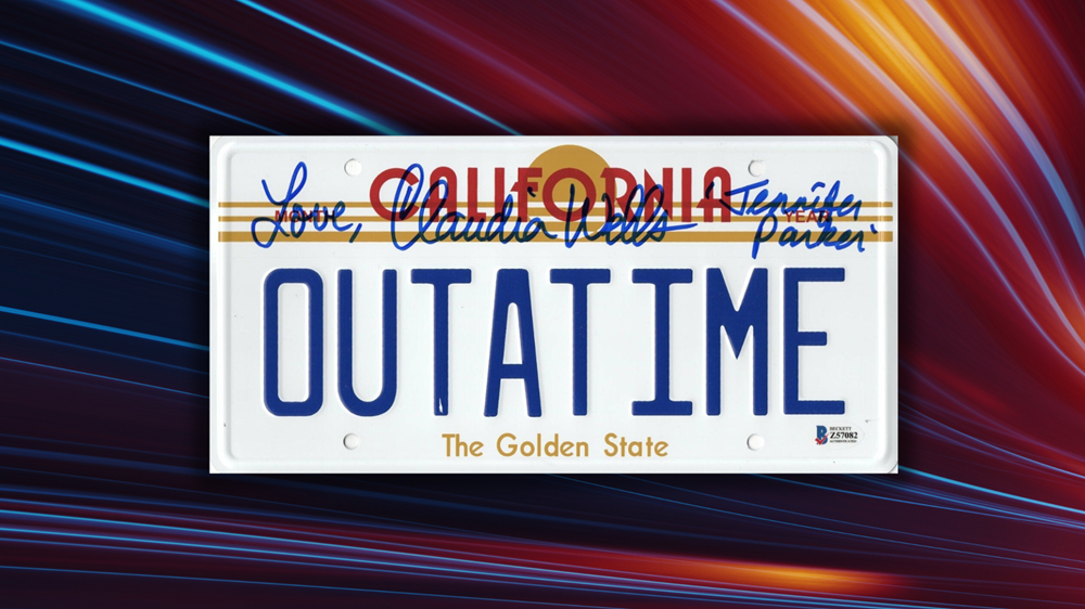 Own a piece of our Get Smart! event theme with this Claudia Wells hand-signed “Back to the Future” license plate! Autographed by the original Jennifer Parker, this collectible is a perfect nod to the iconic film and our night of time-traveling fun. Whether you’re a die-hard fan or just love the nostalgia, this piece is sure to take your collection to 88 mph!