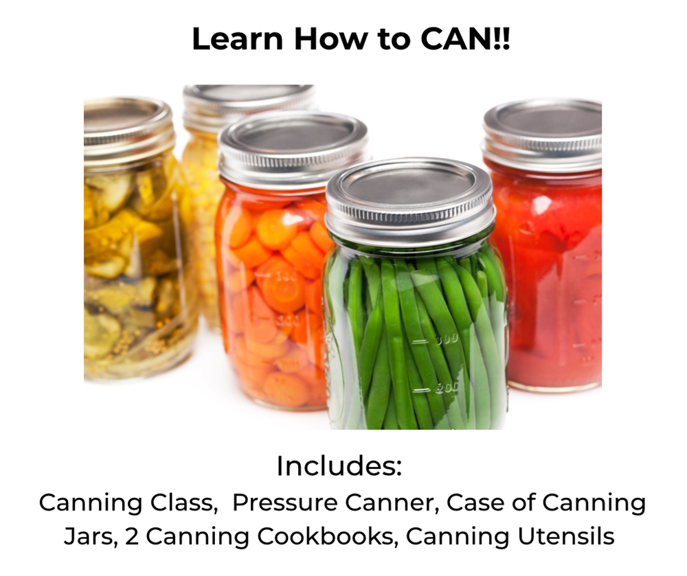 Learn how to can! A class that teaches you how to can and you also bring home what you need to keep going. Learn how to preserve your garden harvest!