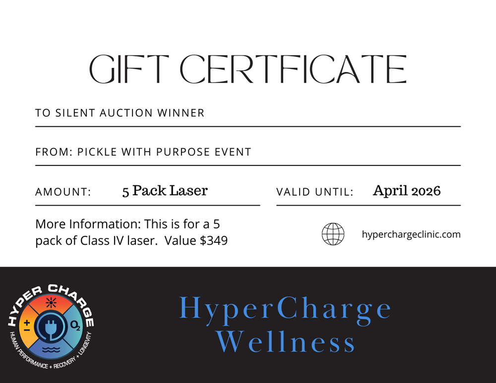 HyperCharge 5-Pack Laser Therapy What is Class IV Laser Therapy? Class IV Laser Therapy is a cutting-edge modality that uses high-powered lasers to penetrate deep into tissues, reaching muscles, bones, and joints. This therapy is ideal for injury recovery and pain management. How Class IV Laser Therapy Works Class IV lasers emit high levels of light energy that penetrate deep into the body’s tissues. The laser light stimulates cellular function, promoting increased ATP production, enhanced circulation, and accelerated healing. This leads to reduced pain and inflammation, improved tissue repair, and overall better cellular health. Class IV Laser Therapy is beneficial for individuals with chronic pain, athletes recovering from injuries, patients undergoing post-surgical recovery, and those suffering from inflammatory conditions.