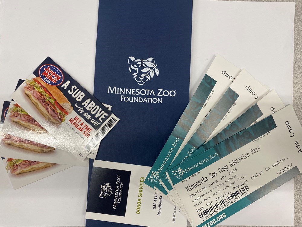 Enjoy a fun-filled family outing with this Minnesota Zoo + Jersey Mike’s package: - 4 Tickets to the Minnesota Zoo – Explore incredible exhibits, from majestic tigers to playful penguins - 4 Free Subs at Jersey Mike’s – Refuel with fresh, delicious subs after your adventure Bid now to treat your family to a day of wildlife, wonder, and great food!