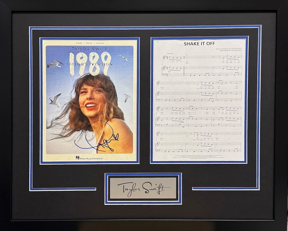 Celebrate the music of Taylor Swift with this exclusive framed display featuring the sheet music for 1989 / Shake It Off. Hand-signed by Taylor Swift herself, this collectible captures an iconic era in pop history and makes a striking addition to any fan’s collection. Professionally framed and designed for long-lasting enjoyment, this piece is both a tribute to her artistry and a standout display for your home or office. Features: Professionally framed sheet music display Signature: Hand-signed by Taylor Swift Includes: 1989 / Shake It Off sheet music Certificate of authenticity included Winner will receive the official item from the KMB Silent Auction Team