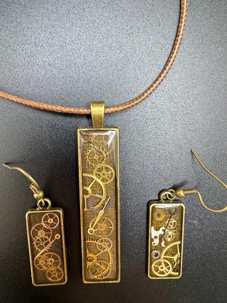 Wearable art with a story to tell. Beverly, a 3rd-year Butterfly Ball supporter, handcrafted this striking gold-tone jewelry set featuring a rectangular pendant and matching earrings embedded with vintage watch parts. Each gear and detail is thoughtfully arranged, creating a bold steampunk-inspired design that’s both unique and versatile. This one-of-a-kind set is more than jewelry — it’s a conversation starter. Just as these pieces transform reclaimed watch parts into art, your bid helps transform Mesquite through Keep Mesquite Beautiful’s recycling, education, and beautification programs.