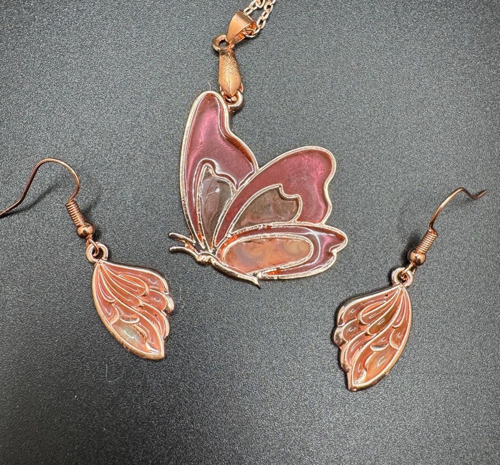 Rose Gold Toned Butterfly Pendant & Earrings Set – Handcrafted with Heart