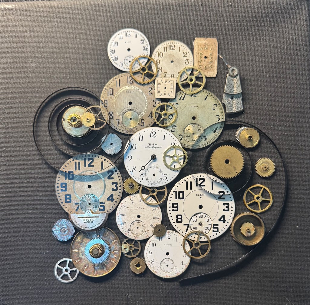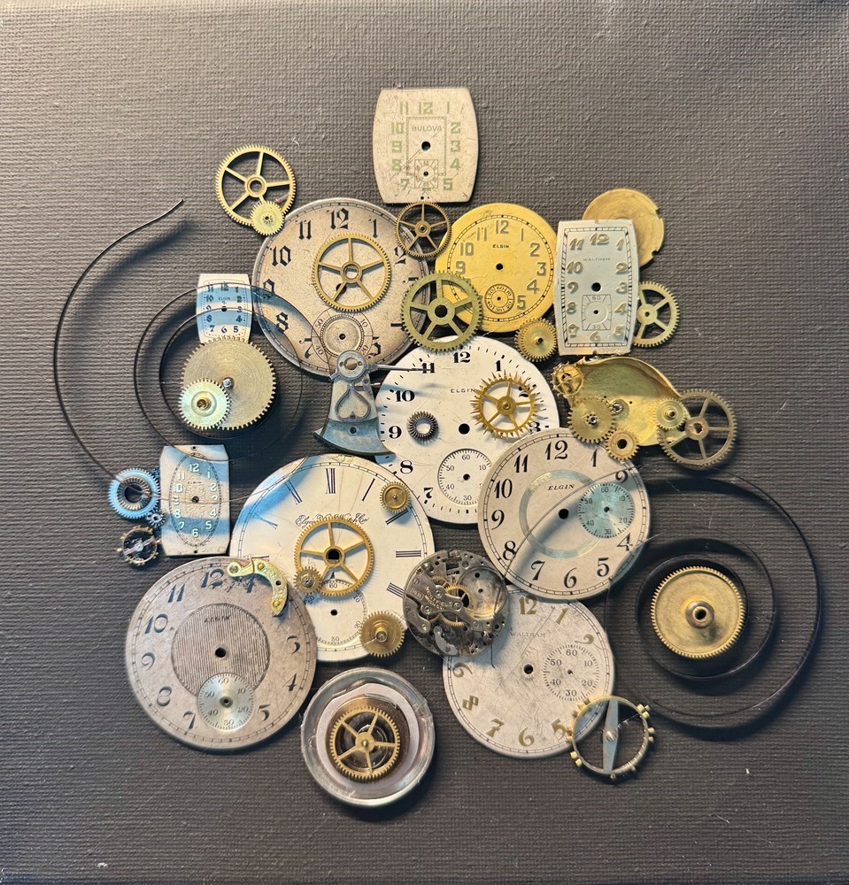 Time rewound, reimagined, and framed with care. This striking pair of collages transforms vintage watch parts into layered works of art. Created by Beverly Abell, a third-year Butterfly Ball contributor, each piece invites you to look closer — gears, faces, and springs come together in thoughtful composition, celebrating both craftsmanship and creative reuse. Display them together for maximum impact or gift one to a fellow admirer of handmade design. Your bid supports Keep Mesquite Beautiful's mission to transform overlooked spaces into places of pride through recycling education, student Green Team Grants, and citywide beautification projects.