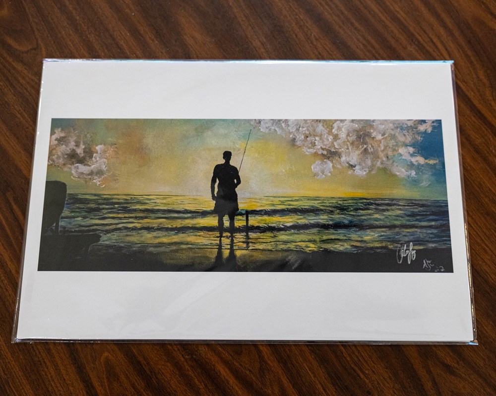 Adam Long Signed Print – “Father Fishing” Inspired Artwork