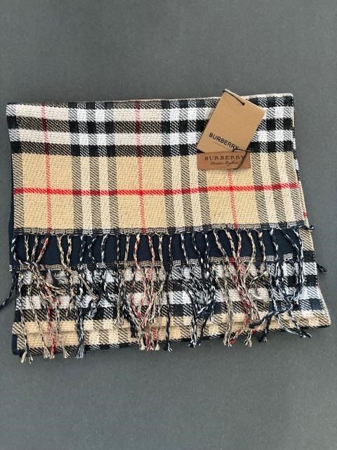 Brand new with tags, this luxurious cashmere scarf by Burberry features the iconic “Nova Check” pattern in the classic Archive Beige colourway. Woven in Scotland on traditional looms, the piece is crafted from 100% cashmere, with fringed ends and the distinctive Burberry signature check. Ideal for someone looking to elevate their winter wardrobe or invest in a timeless accessory.